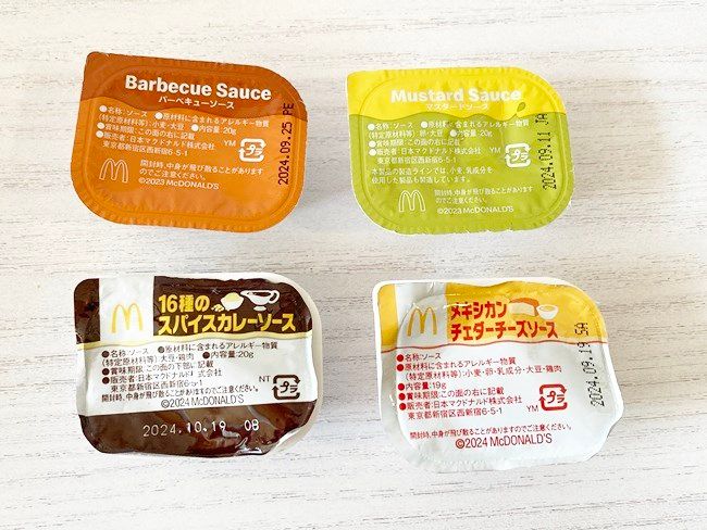 「チキンマックナゲット」15ピースにはお好きなソース3個が、5ピースにはお好きなソース1個がついてきます。もっとソースを楽しみたい・いろんな味を食べてみたいという方は、ぜひ追加購入してみてくださいね。