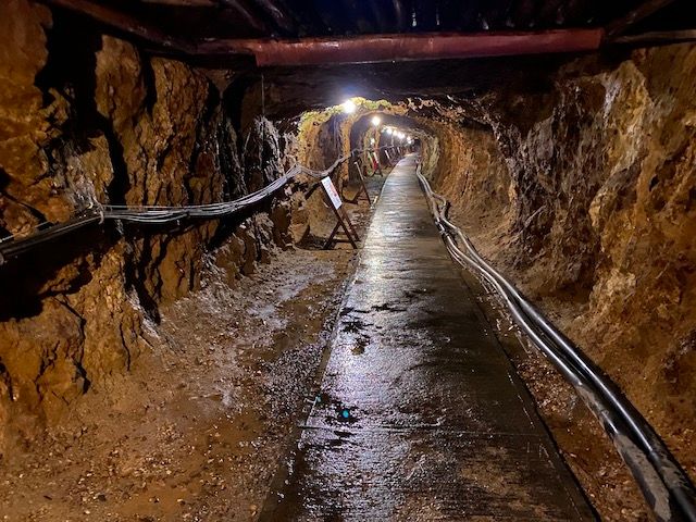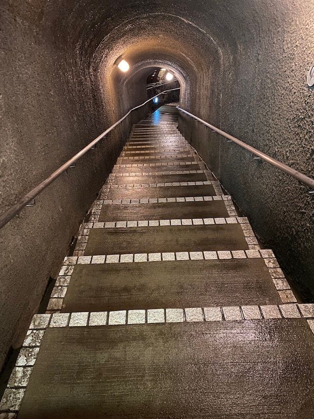 中はひんやりとしています。夏でも10度くらいなので、羽織ものがあるといいでしょう。坑道内にトイレはありません。階段を降りていくとどんどん神秘的な雰囲気に。期待が高まります!