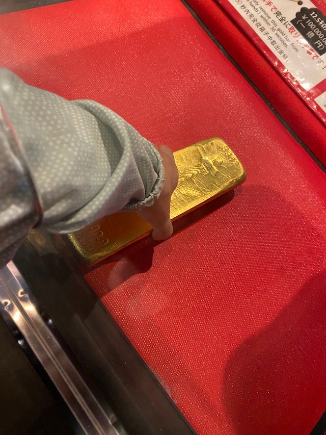 なんと1億5000万円以上もする金塊に触れることも! 重さ12.5kg! 以前はこちらを穴から30秒で出せたらシリアルナンバー入り金箔カードがもらえる、というチャレンジができたのですが、2024年4月22日で取出体験は終了となっています。現在は、金塊ケースの中で触ることができます。