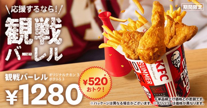 【ケンタッキー】520円もお得な「観戦バーレル」!応援が盛り上がるよ♪