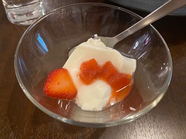 最後のデザートは苺がのったパンナコッタ。小さく見えますが結構な量です。お口がさっぱりしました。