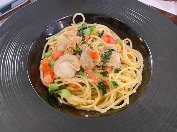 お友達が食べたのはホタテのオイルパスタです。季節野菜がターップリ入っていてこれもお得感あり。