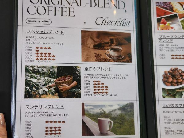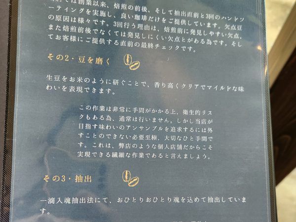 コーヒーのこだわり、愛情が、メニュー冊子から伺い知れます