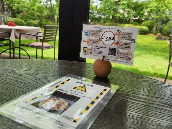 うさぴょんぴょんは、お庭を眺められる店内の窓側に座りました。 席から緑豊かなお庭を眺めながら最高です。 注文方法は、今時のQRコードから発注しました。もちろんわからなかったら店員さん経由での注文もOK