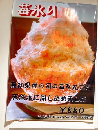 高知県産の旬の苺を丸ごと天然氷に閉じ込めました!とのこと。