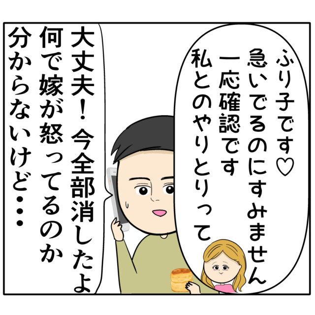 「大丈夫!今全部消したよ。何で嫁が怒ってるのか分からないけど・・・」