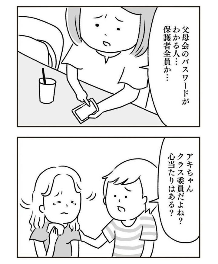 穏やかな園生活を過ごしていた3人ですが、ある日、園である事件が起きてしまいます。園内の父母を対象とした掲示板で、仲良しママ友の1人・アキコへの悪口が投稿されているのが見つかるのです。匿名で投稿できるSNSのため、誰が書いたのかわかりません。これはショックですよね。