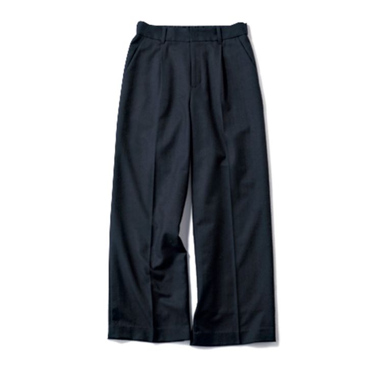 働き女子なら、キリッと見せてくれるきれいめパンツもワードローブに一本お忘れなく。ワイドパンツ¥24,200(アンタイトル)