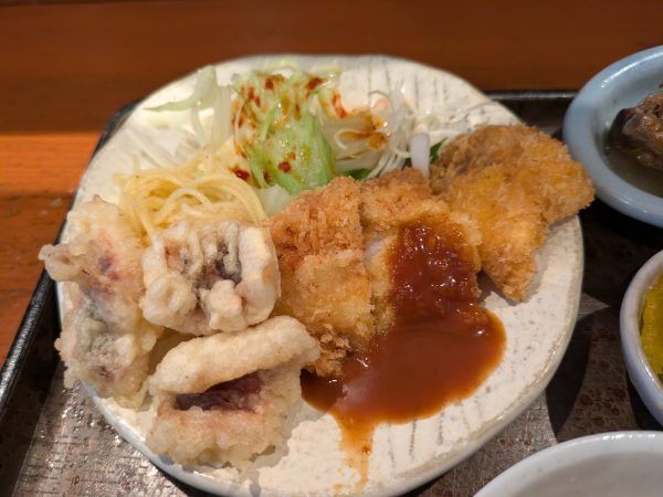 豚ロースカツ・イカフライ・鶏の親子煮+小鉢5品も1000円