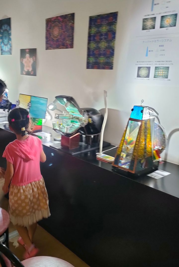 ここのブースでは主に万華鏡のにすると色々なものがどのように見えるかです。