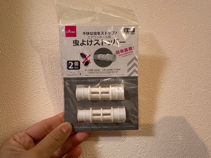 写真はありませんが、赤ちゃんゴキブリがクーラーの排水ホースから何度か侵入した事もありました。庭やベランダにあるクーラーのホースから赤ちゃんゴキブリが入ってくるのは鉄板のようで、DAISOにゴキブリが入らない様にするこんなグッズも売っています!!