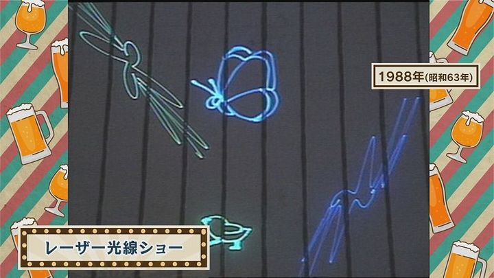 当時、プロジェクトマッピングがない時代、最先端なエンターテイメントとして、真夏のビアガーデンを盛り上げていました。