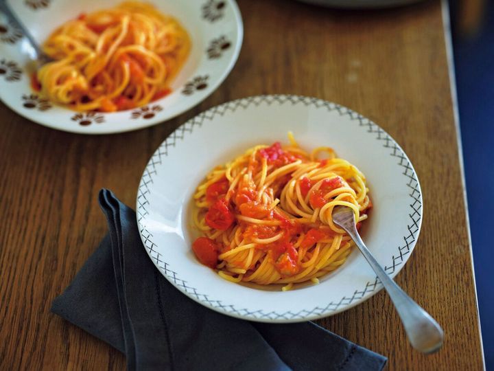 夏真っ盛り! 真っ赤に熟れたピチピチのトマトが、スーパーでもひときわ目立っていますね~。今日は、〈トマト大好き!〉なあなたに届けたい、パスタをご紹介します。使う素材はトマト+ミニトマト(+にんにく)だけ。トマトのうまみがぎゅっと凝縮したたまらないおいしさを、ぜひご堪能ください!