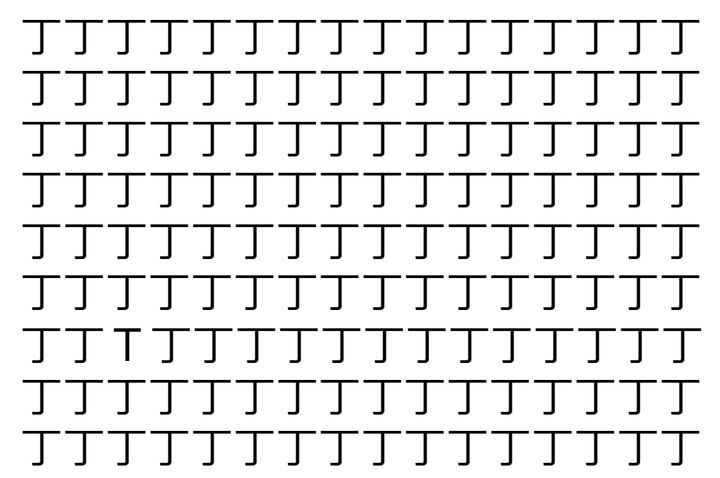 2. 【脳トレ】「丁」の中に紛れて1つ違う文字がある!?あなたは何秒で探し出せるかな??【違う文字を探せ!】