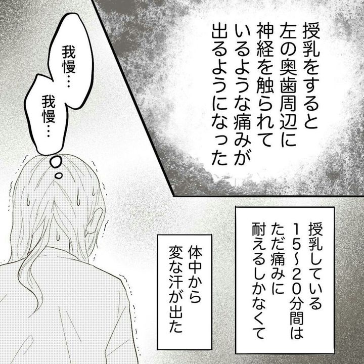 まろさんは、なかなかでない母乳に苦しみ、嫌がるミルクをあげる日々。そんななか、突然ひどい歯の痛みに襲われます。病名は、左顔面非定型歯痛、というものでした。