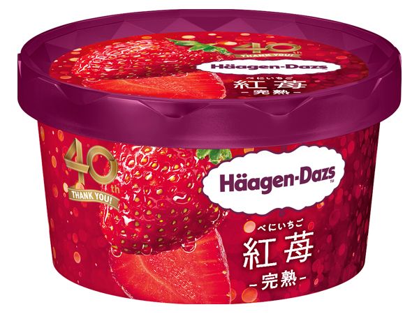 全国で期間限定販売の「紅苺(べにいちご) -完熟-」は、ハーゲンダッツ ジャパンが創業40周年を迎えることを記念し、これまでの感謝の気持ちを込めて届ける「40周年記念商品」の第1弾。