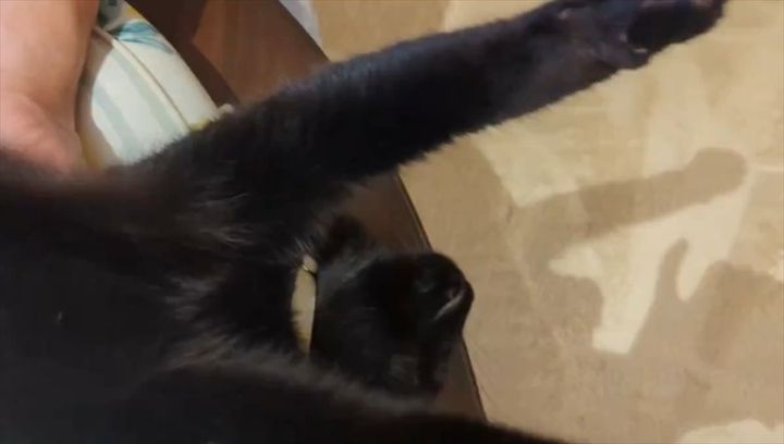 どれだけ揺らしても嫌がる素振りを見せない黒猫が話題になっています。 優しく肩を揺すっているからでは?と思いきや・・・、なかなか激しい揺さぶりですよ!!