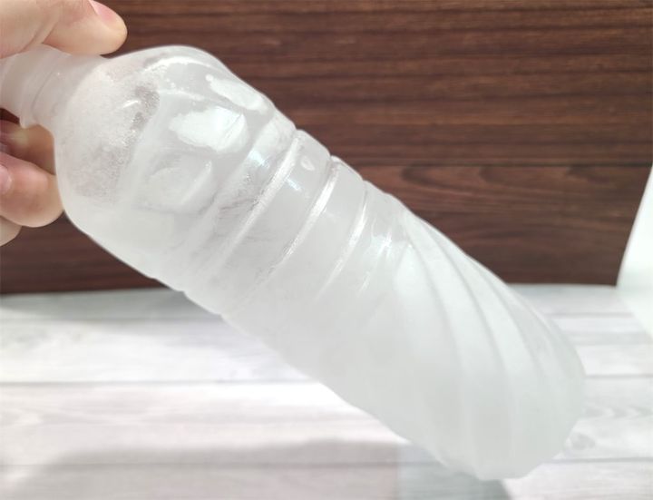 3. ペットボトルをそっと取り出して、凍っていないことを確認してから、強い力で振ってみましょう。うまくいけば、ペットボトルの中身が一気に凍ります♪うまくいかないときは、冷やす時間を変えてみましょう。