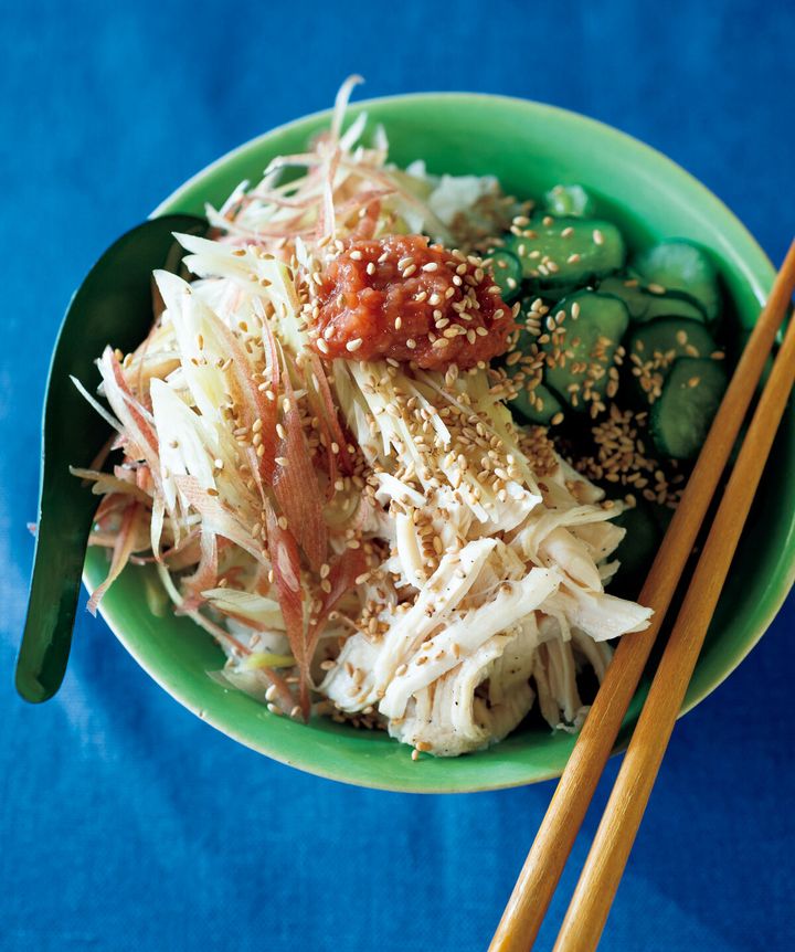 夏真っ盛り。うだるように暑い日は、さっぱりおいしい『蒸し鶏とたっぷり薬味の梅ご飯』なんていかがですか?