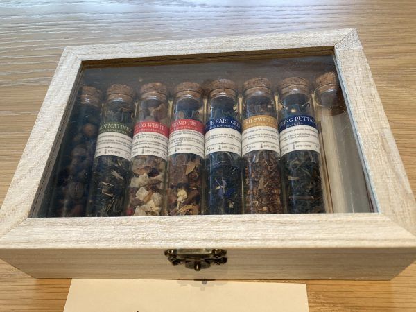 初夏は、マンゴーをふんだんに使ったアフタヌーンティー。 フリーフローのドリンクは、ハーブティーの種類がたくさんあります。 ボックスに並んだ茶葉の香りを試せして、お気に入りを選べます。