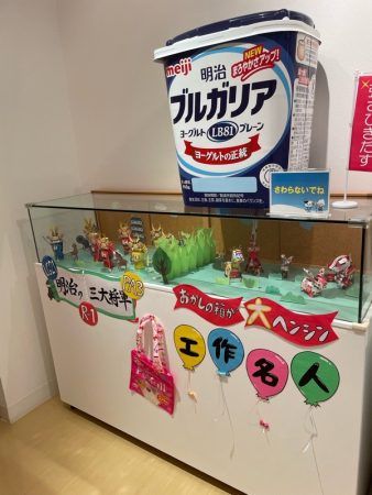 入って直ぐに、明治のキャラクター達がお出迎えです!