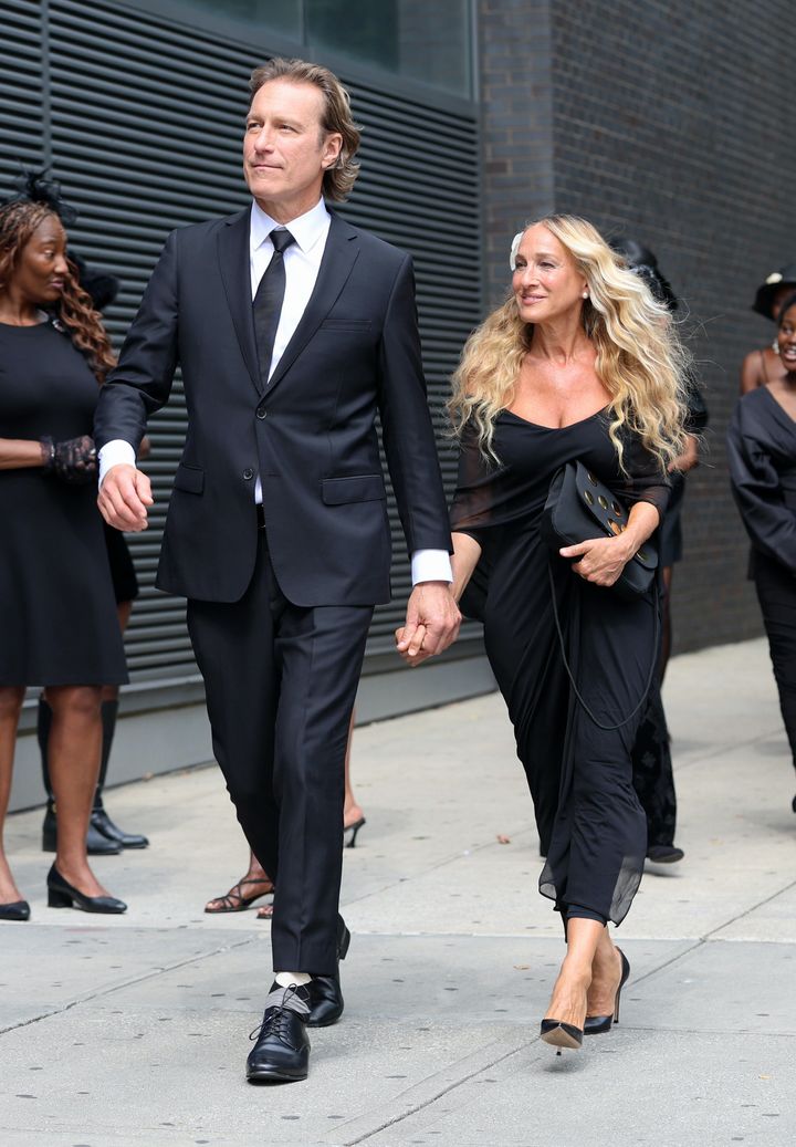 John Corbett and Sarah Jessica Parker are seen on the set of "And Just Like That" on July 22, 2024 in New York City.