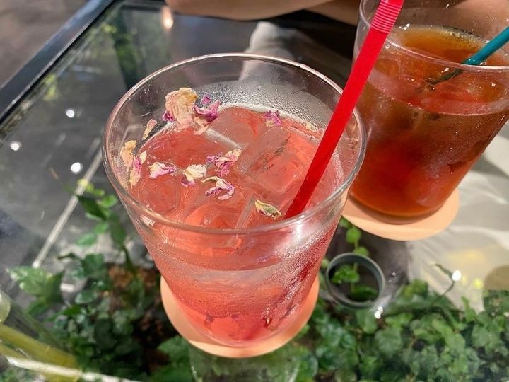 一緒に頼んだ「ローズソーダ」750円 にもエディブルフラワーが浮かんできれいでうっとり。ローズがさりげなく香る清涼感のあるソーダは、甘さが控えめでスイーツと合わせてもしつこくなくいただけてました。