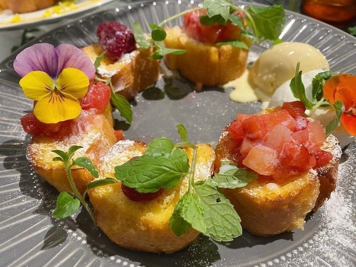 エディブルフラワートッピングが華やか!【花冠フレンチトースト】は必食♡