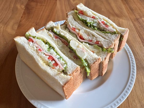 材料さえ用意してしまえば、あとは食パンに「私のフランス料理」を塗って挟むだけなので超簡単。食べてみると、具を挟んだだけとは思えない、レストランのような複雑な味わいが口の中に広がります。写真を見てもらうと分かると思いますが、とにかくボリュームたっぷりで、これだけでお腹いっぱいになります。何より、作るとき火を使わなくて済むのがうれしい…!