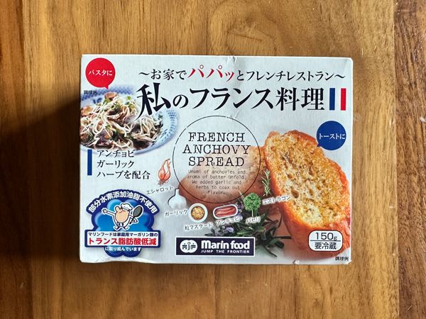 「私のフランス料理」とは、やわらかいマーガリンに、すりおろしたエシャロットとガーリック、粒入りマスタード、アンチョビ、エストラゴン(タラゴン)など、自分で全部用意するのは手間に感じる原料を絶妙なバランスで合わせたもの。これがあれば自宅で気軽にフレンチレストランの雰囲気を味わうことができちゃいます。