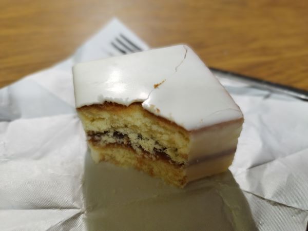 ホワイトチョコレートがけの四角いカステラに白いんげん豆のジャムがサンドされた真っ白のケーキ。オリジナルのジャムがあんこのような味で、餡×チョコの組み合わせが初めてなのにどこかなつかしい味わい。