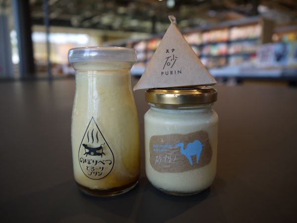 鳥取砂丘をコンセプトにしたご当地プリン。“砂”袋に入っているのはほのかに甘い粉末カラメルで、濃厚なとろとろプリンにこの砂をかけて食べます。ジャリッとした食感はまさに砂丘の砂を食べているかのような新感覚!