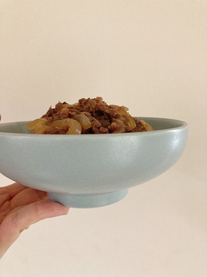 夏休み前に買い足したのが、この小ぶりの麺鉢。これまで、置きごはんは基本的にお弁当スタイルにしていたのですが、この猛暑で食欲が減退しそうですよね……でも冷たい麺類なら食べたくなるはず。しかし我が家には深い麺鉢しかなく子どもには食べにくそうだったので、浅めの麺鉢を探して歩きました。そこで見つけたのが、こちら。15㎝と小ぶりのサイズ感で子どもでも持ちやすいので丼物にも便利かなと汎用性の高さで選びました。電子レンジも使用可なので、写真のような牛丼などはもうよそった状態でラップをして冷蔵庫に入れていき、本人に食べる直前に温め直しをさせる方式に。お弁当箱に入れた丼物よりも食べやすく、見た目もキレイ。白と黒の器ばかりを買いがちなので、アイスブルーの涼し気で明るいカラーが食卓を少し華やかにしてくれる気もします。一般的な麺鉢と比較して、底面が広くスプーン運びがスムーズ。和え麺など具材と麺を混ぜる料理にも適しています。冷たいうどんや中華麺は麺を茹でて水けをしっかり切って、少量のごま油で和えて器に具材と共に入れて冷蔵庫で冷やしておき、つゆを別添えで用意。この方法で冷やしたぬきうどんや、冷やし中華などのバリエーションを増やしていく予定です。