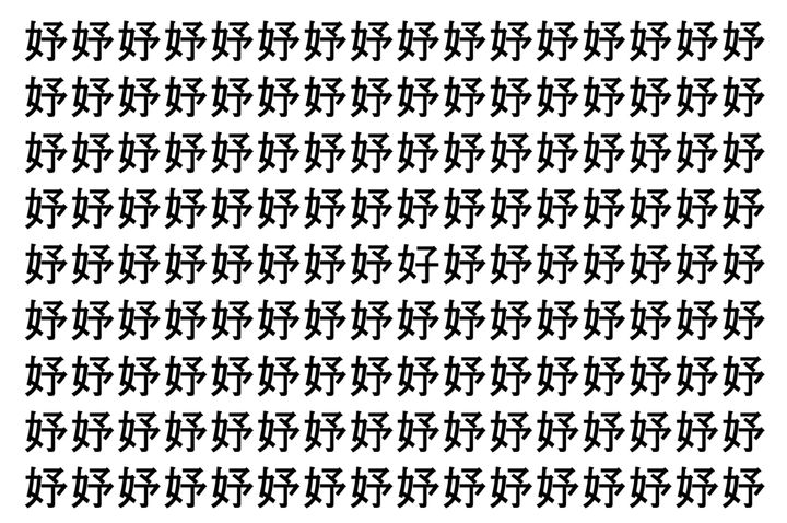 2. 【脳トレ】「妤」の中に紛れて1つ違う文字がある!?あなたは何秒で探し出せるかな??【違う文字を探せ!】