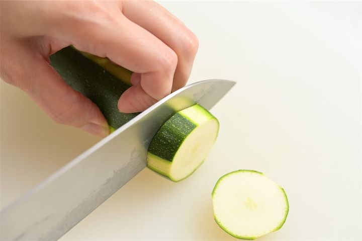「ズッキーニはきゅうりより太いので、縞模様が入れやすく、浅漬けですがちょっとおしゃれな見た目になります。また1cmと厚めに切ることで、よりコリコリとした食感が際立っておいしいですよ」(高越さん)