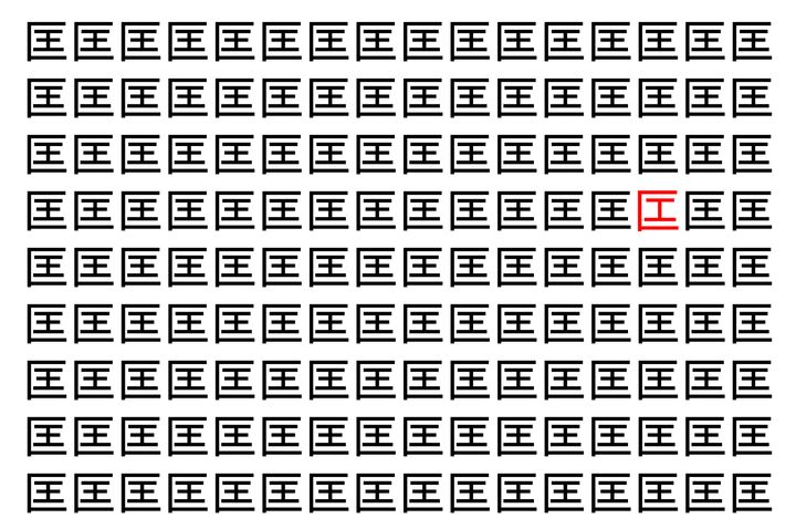 画像の中には、「匡」という漢字が縦に9行、横に16個並んでいます。 全部で144個となりますが・・・、そのうち1つは「異なる漢字」となってますよ!!