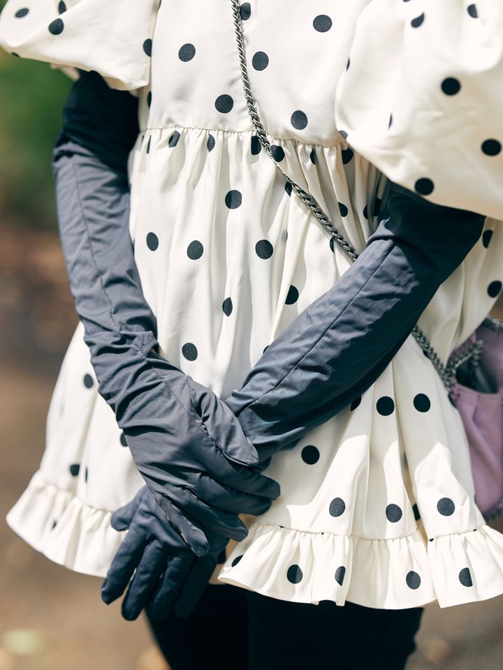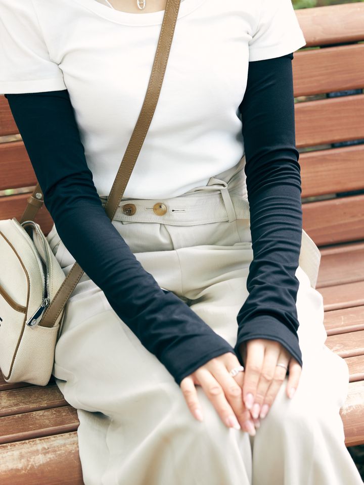 「ちょっとした外出も全身に日焼け止めを塗ってから家を出るので、夏場は娘たちにまだ!?と言われることも多々(笑)。車の運転、自転車での送迎にもアームカバーを付けるようにして徹底的に対策しています。子どもが一緒じゃないときは日傘も必須です」吉岡祐子さん・167㎝/乳幼児スリープコンサルタント(6歳と9歳女の子ママ)