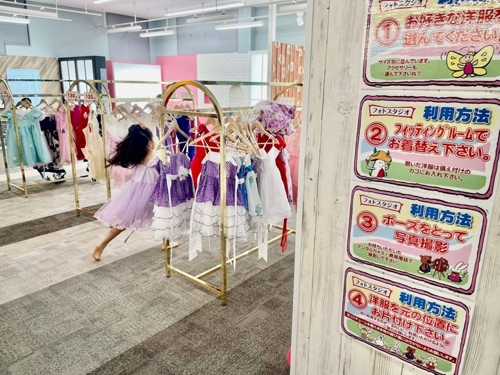 こちらは女の子が夢中になるエリアです。好きな衣装を着て好きなブースで撮影ができます。