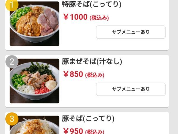 ランキングがあると選ぶときの参考になるのでありがたい~。 2位の豚まぜそばも気になります… そして「麺屋柚木」さんでは量や具材などを好みにカスタマイズできちゃうんです♪