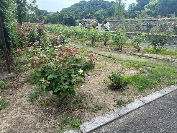 駐車場近くにあるバラ園もかなり広い。長いバラアーチもありシーズン中はかなりきれいです。
