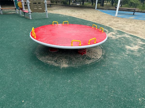 円盤型のスプリング遊具には取っ手がたくさん付いていました。