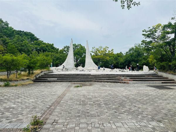 遊具の近くには広島県出身の彫刻家 杭谷一東さんによるモニュメント「太陽の滴」があり、公園のシンボルになっています。