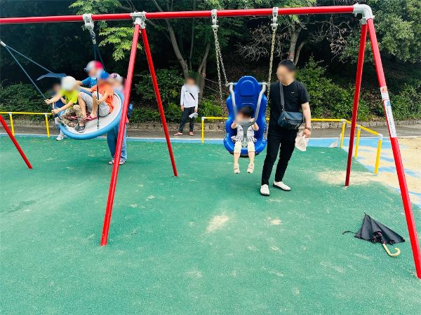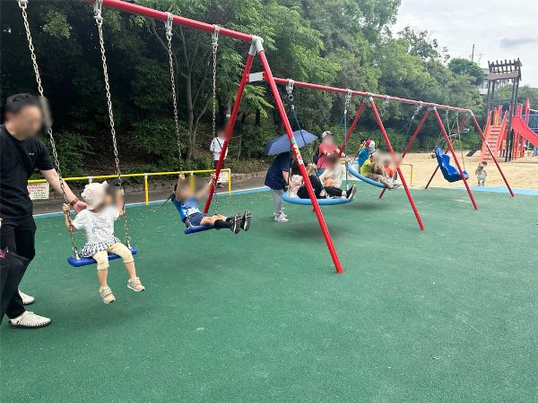 2つある円盤型ブランコは人気が高く、ずっとフル稼働していました。