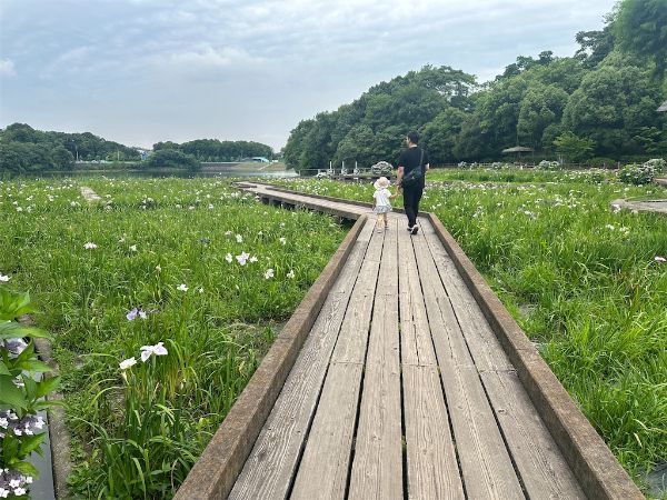 遊具から少し離れているのですが、遠くに見える花ショウブが気になって咲いているところまで歩きました。