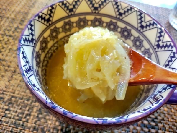 季節の旬の野菜をふんだんに使用したスープは、まさに自然の恵みそのもの! 具材は、玉ねぎがたっぷり入っていて、甘みと旨味が凝縮されています。