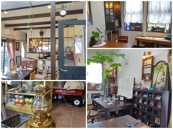 店内に入ると、木の温もりを感じる家具や、アンティーク雑貨で統一されています。 吹き抜けの天井から降り注ぐ自然光は、開放感のある明るい空間を演出。思わず長居したくなるような、居心地の良い雰囲気が漂っています。センスの良いアンティーク雑貨は、店主のご主人のコレクションなんだとか。