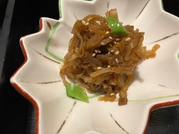 切り干し大根の炒め煮は、炒りごまも効いてこっくりとした味がGOOD!思わず「もっと食べたいなぁ。とつぶやいてしまいました。