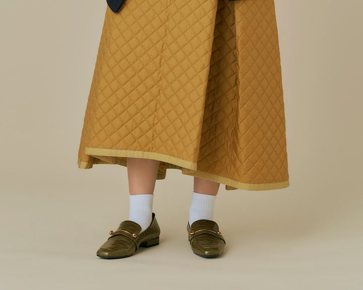 クリーンな白の靴下はカジュアル度が強く、コーデや肌色から浮いて見えやすいので注意。スカートの場合は、肌なじみのよい色や、肌見せしすぎない丈感選びがポイントです。また、地厚すぎるものは、スポーツ用っぽさを強調してしまうのでNG。