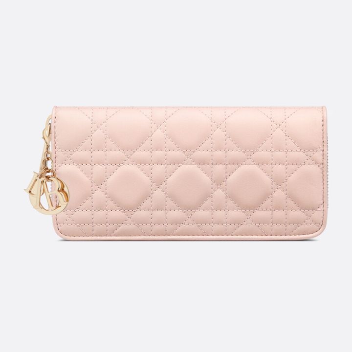 アイコニックな「カナージュ」ステッチと取り外し可能な“D.I.O.R.”チャームもキュート。たっぷりの収納力で、カードや領収書なども整理しやすそう。[ヨコ19×タテ9.5 ×マチ2.5cm、カードスロット8、コンパートメント3、パッチポケット3、ジップポケット1]財布¥135,000(ディオール/)