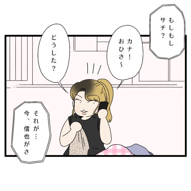 カナさんはカフェで見た信也さんのことをサチさんに伝えました。